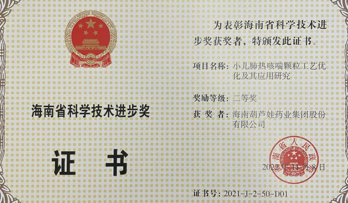 asiagame药业集团申报的专利“克咳片及其制备方法”荣获 第四届海南省专利奖金奖