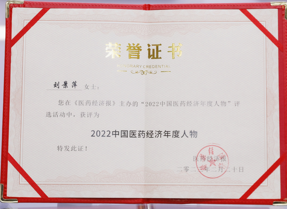 asiagame药业集团董事长刘景萍当选“2022中国医药经济年度人物”