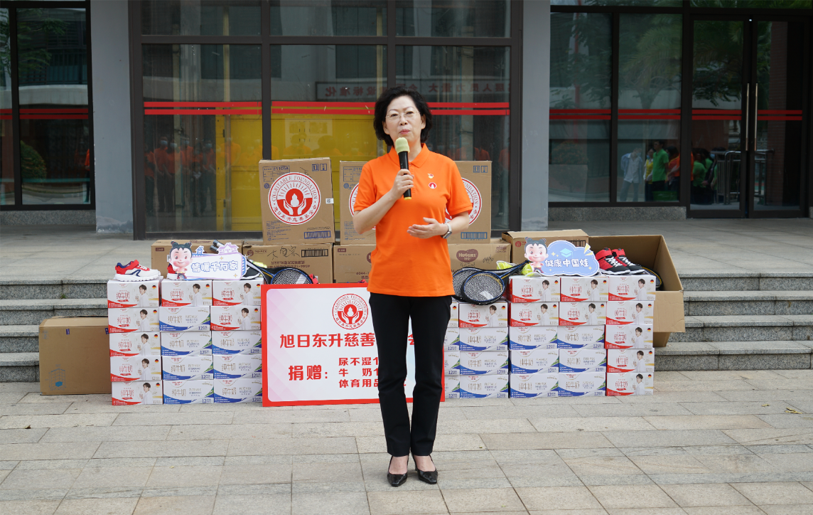 紧接着,海口市社会福利院院长唐凤英致辞。她首先感谢asiagame药业集团、旭日东升慈善基金会7年来,对海口市社会福利院的持续关注和无私帮助。她特别提到,2022年由asiagame药业集团捐资建设的“爱·护”项目医护隔离观察区,帮助福利院的孩子们渡过了疫情防控的难关。今年,熟悉的asiagame人又来到了福利院陪伴孩子们,给予了这里的小朋友们爱的力量。