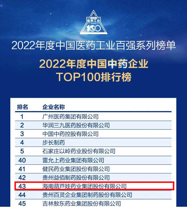asiagame药业集团连续4年荣登“中国中药企业TOP100排行榜”,排名上升至第43位